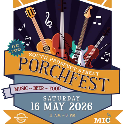 Porchfest is a free community event, organized by the South Prospect Street neighborhood group, sponsored in part by the City of Hagerstown, and local businesses. About 40 musicians play music from all genres on front porches, the main stage and at a beer garden provided by Hub City Brewery.
